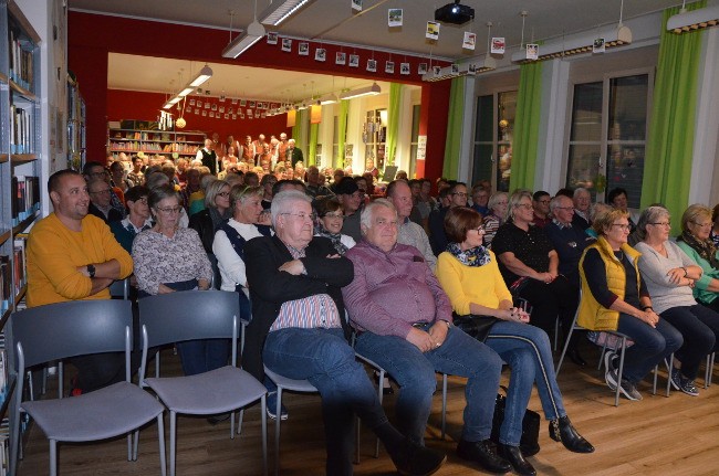 Der Mastermind - Hans Tuppinger - hat in beeindruckender Art und Weise die damalige Stimmung eingefangen und ein sehr harmonisches Dokument für die Nachwelt geschaffen. Viele sind unserer Einladung gefolgt - eigentlich die Untertreibung des Jahrhunderts. So viele Menschen waren noch nie in unserem Lesezentrum. Unglaubliche 150 Menschen haben sich eingefunden um an längst vergangene Tage erinnert zu werden, die damalige Mode, das Miteinander, an liebe Menschen zu denken, die nicht mehr unter uns weilen und auch Kinder zu sehen, die in der Zwischenzeit erwachsen geworden sind.